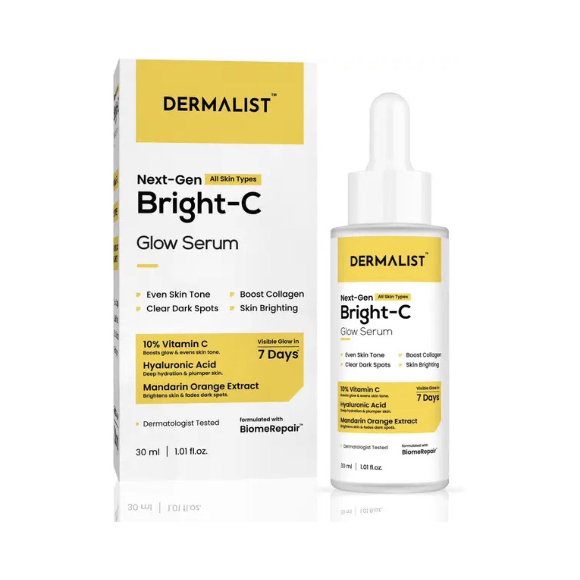 Dermalist Bright C Glow Serum 10% Vitamin C, Hyaluronic Acid Glowing Skin & Dark Spot Care(30 ml)