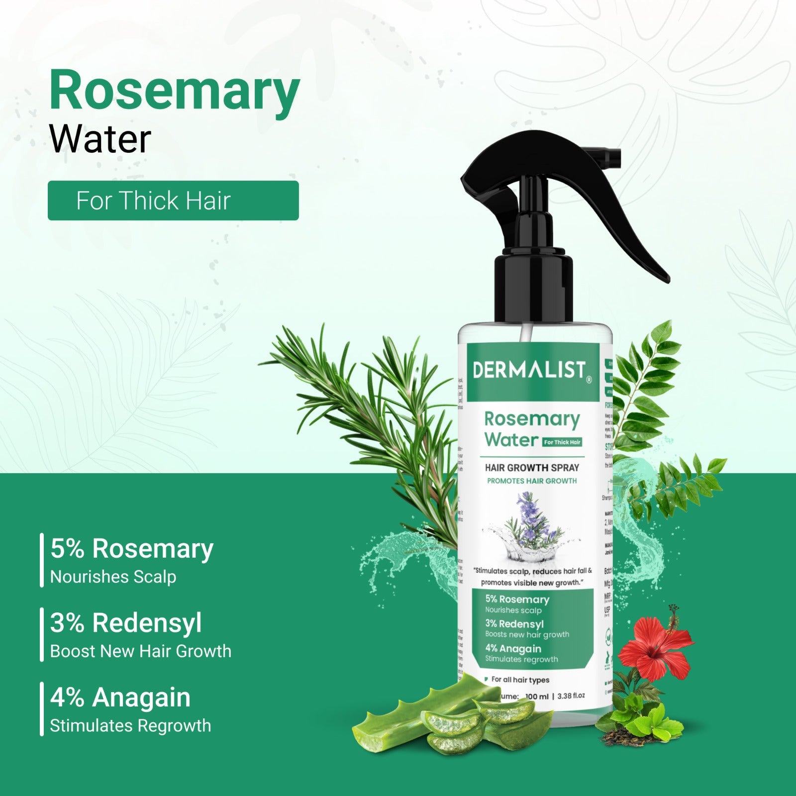 Dermalist Rosemary Water Spray for Hair Growth, Thickness & Hairfall Control, 100% Natural Hair Spray (100 ml)