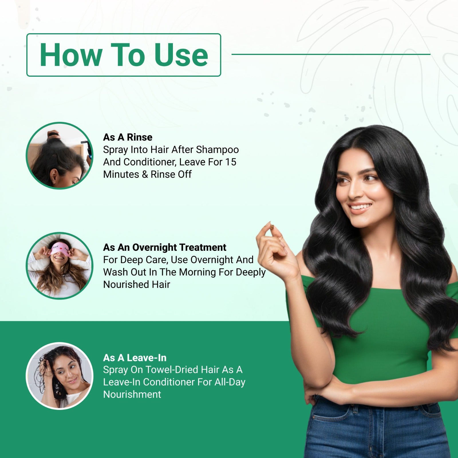 Rosemary Hair Growth Spray blends traditional care with new-age actives to support visible hair revival. Powered by Rosemary oil and Rosemary leaf extract, it helps improve scalp circulation, stimulate follicles, and support thicker, healthier hair. With Redensyl to target hair growth at the root and Aquaxyl to maintain scalp hydration, this formula does more than just sit pretty - it works hard from day one. Lightweight and non-sticky, it fits easily into any routine. Use it as a quick rinse after wash, an overnight scalp mist, or a daily leave-in spray. However you use it, you’re feeding your scalp what it really needs - nourishment, moisture, and care. Designed to work with consistent use, most users start noticing hair feels stronger, strands appear denser, and overall texture looks revived. No harsh chemicals, no fuss - just an easy, everyday formula built to support real results. Made for all hair types and routines, this is your go-to for hair care that keeps up with your pace and your scalp’s needs.